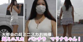 アイドル風,カメラ目線,パンチラ,ミニスカート,ミニスカハンター,女子大生,生足,純白,美尻